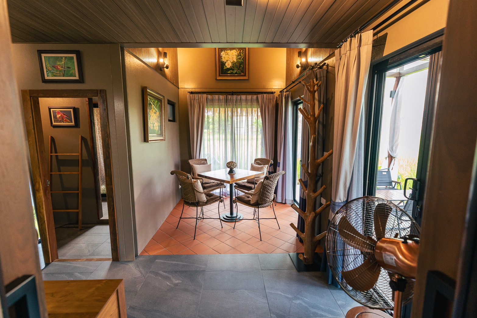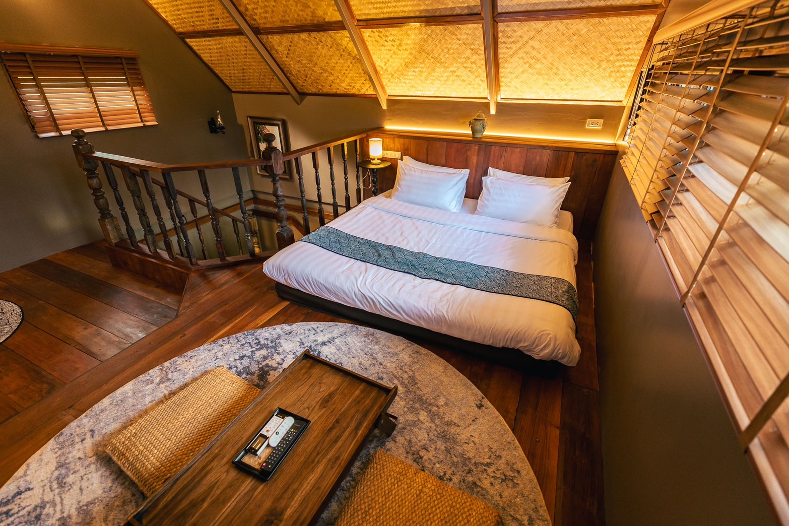 The bed is in the attic.. you can lie down and admire the Doi Luang view. The bathroom and living room are located below.